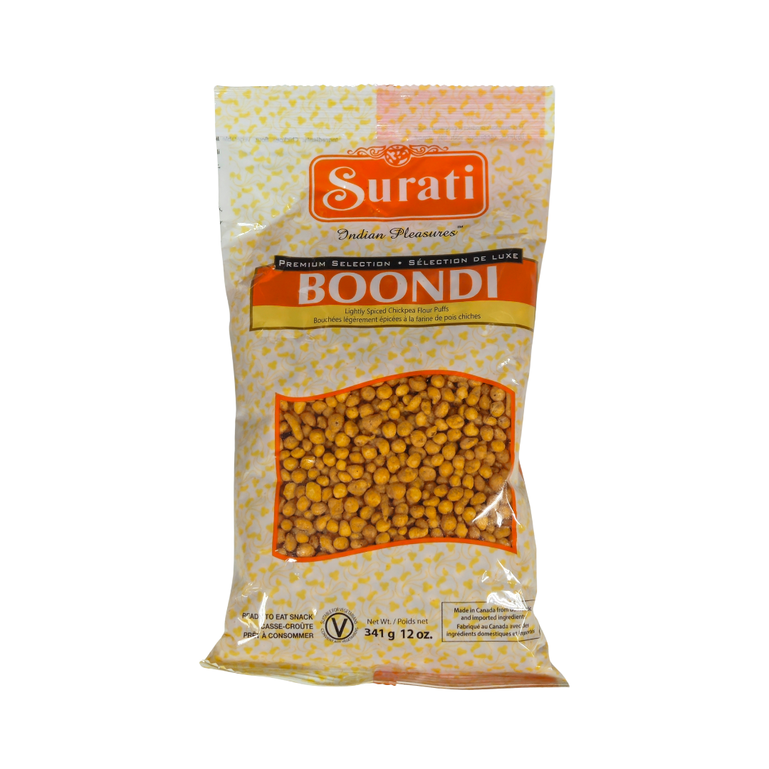 Enhance your dishes with SURATI PLAIN BOONDI, made with carefully selected ingredients. This 300G pack provides a generous amount of crispy, savory boondi that adds a burst of flavor to any meal. Elevate your cooking game with this versatile and delicious ingredient.