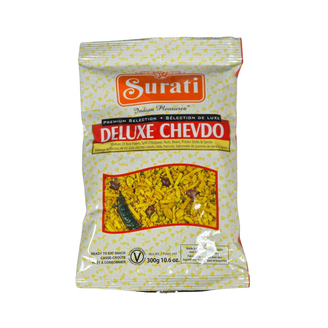 Indulge in the rich and flavorful Surati Deluxe Chevda, a crunchy snack that combines traditional Indian spices and ingredients. Made from high-quality ingredients, this 300g pack is perfect for satisfying cravings and adding a touch of spice to your day. Try it now and experience the authentic taste of Surati!
